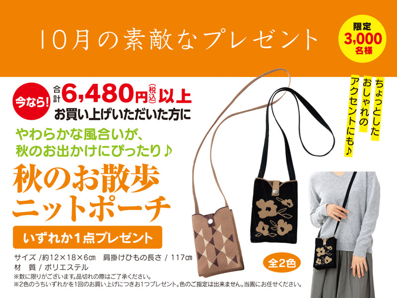 10月のお楽しみプレゼント 秋のお散歩ニットポーチ